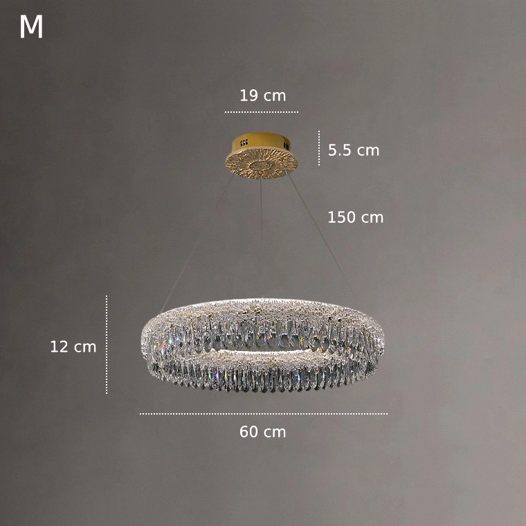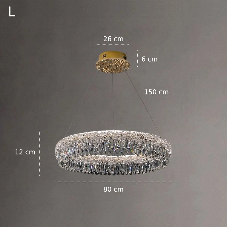 Серия кольцевых люстр с рассеивателем из фактурного стекла, имитирующим лед, и подвесками в виде капель