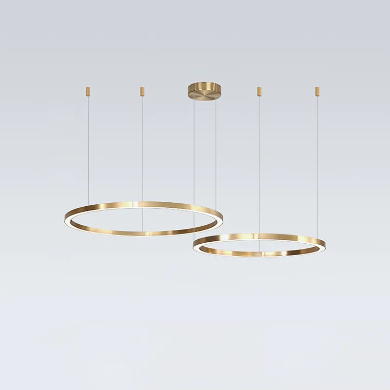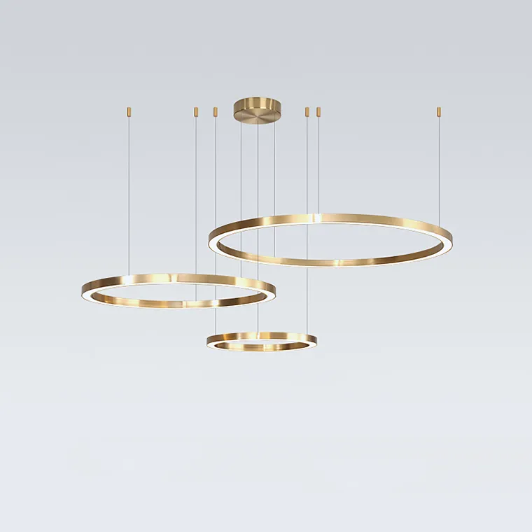 Серия светодиодных люстр в виде комбинации колец разного диаметра с LED-подсветкой по контуру корпуса в цвете латунь