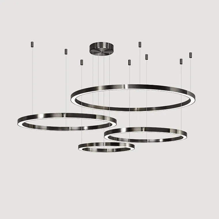 Серия светодиодных люстр в виде комбинации колец разного диаметра с LED-подсветкой по контуру корпуса в черном цвете