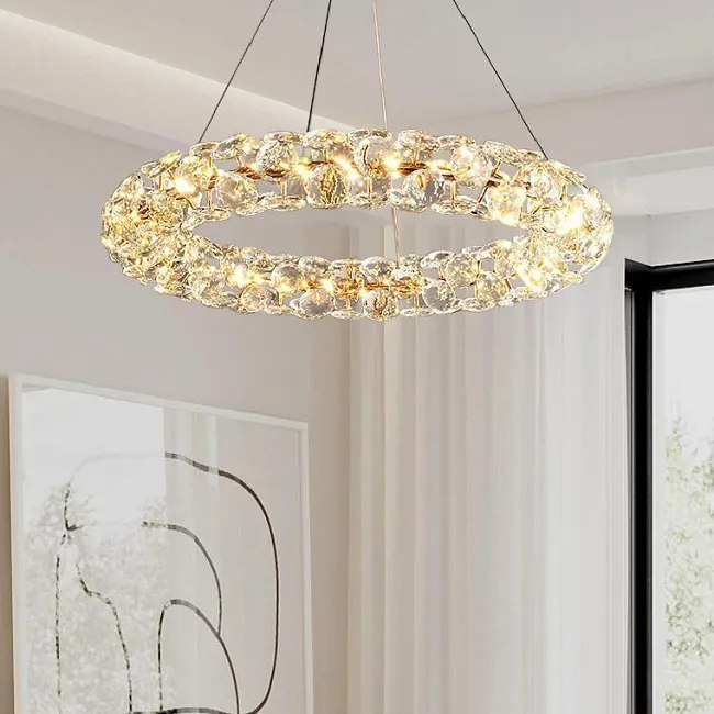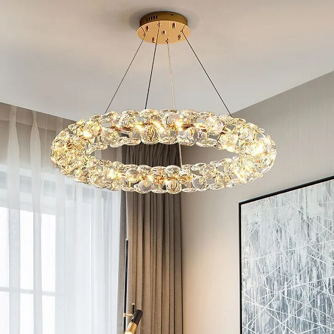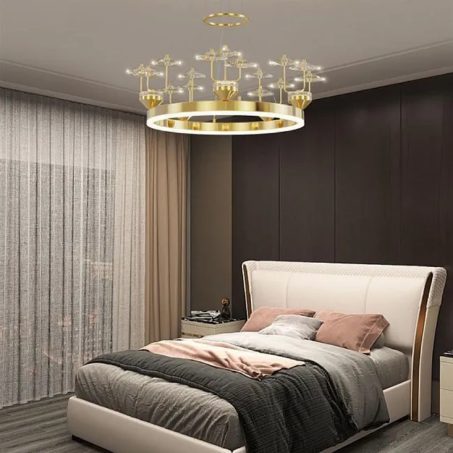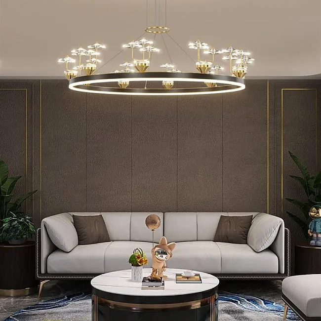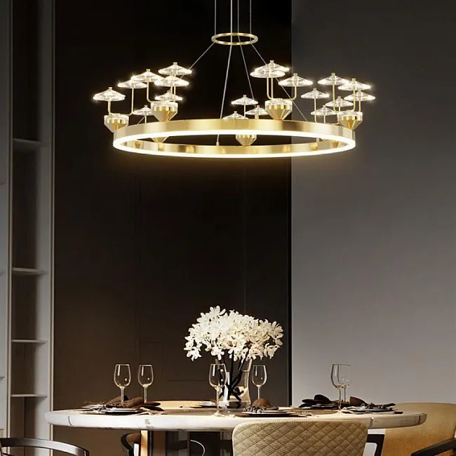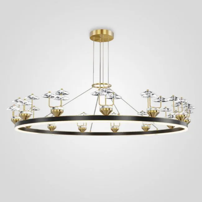 Серия кольцевых светодиодных люстр с абажуром из черных и латунных пластин прямоугольной формы