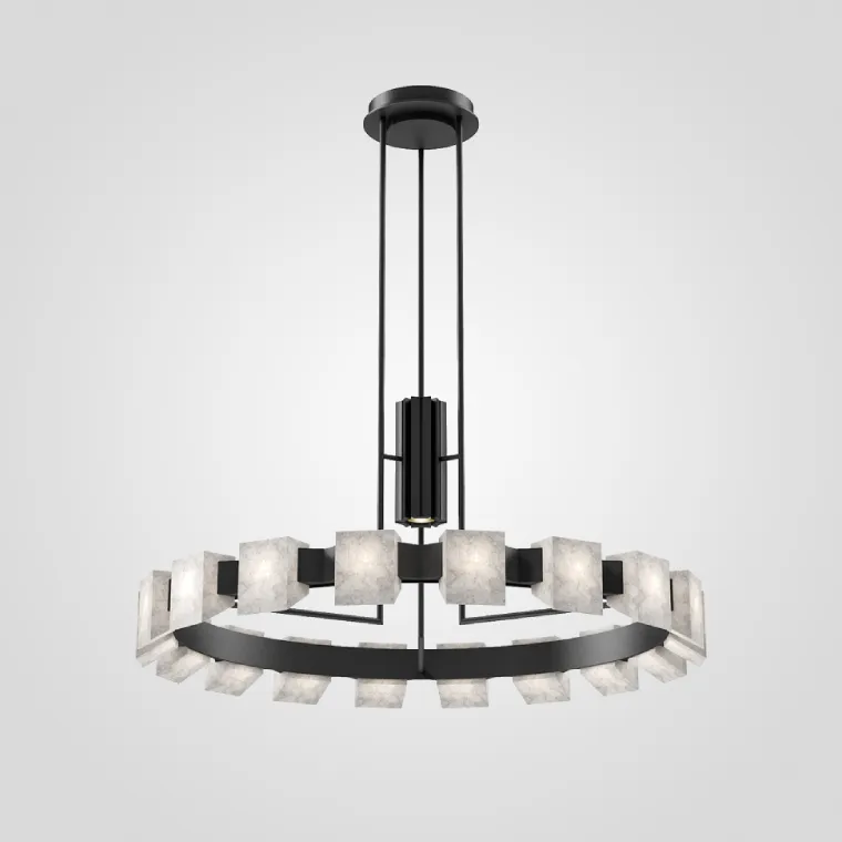 Кольцевая люстра с центральным цилиндрическим плафоном и прямоугольными рассеивателями из белого мрамора