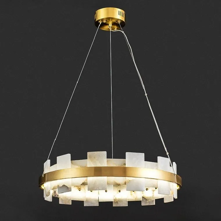 Светодиодная люстра с абажуром из прямоугольных мраморных пластин на кольцевом каркасе