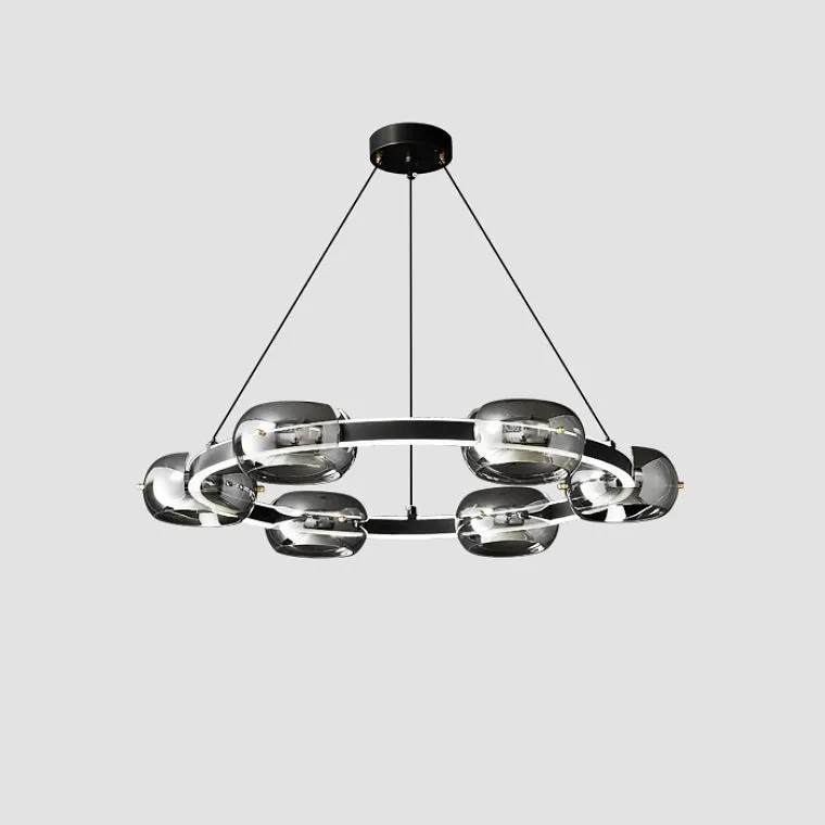 Округлые плафоны из стекла серо-дымчатого цвета с зеркальным эффектом будут мягко рассеивать свет, создавая приятный и уютный визуальный эффект. Они станут настоящей изюминкой вашего пространства.