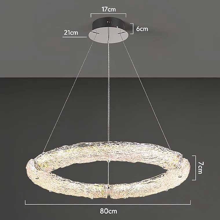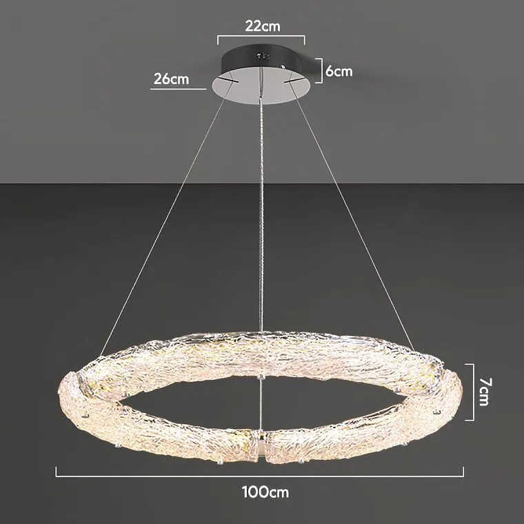 Люстра будто парит в воздухе, благодаря элегантному струнному подвесу, создавая ощущение легкости и невесомости. А теперь представьте себе самое главное – стеклянные рассеиватели в виде тающего льда… застывшего в своей неповторимой, ускользающей красоте. Кажется, будто время остановилось, запечатлев мимолетное чудо природы в каждом изгибе стекла.