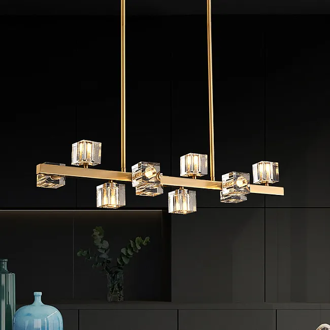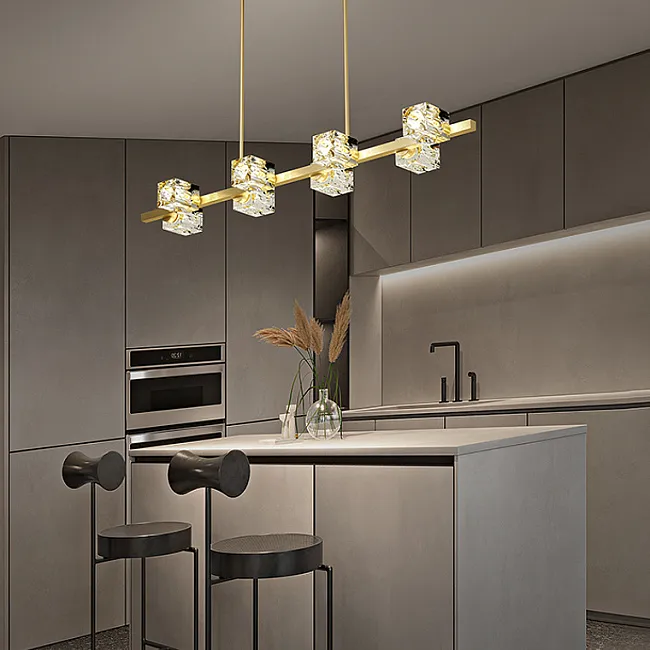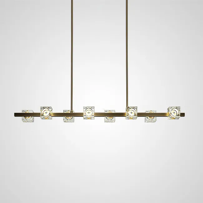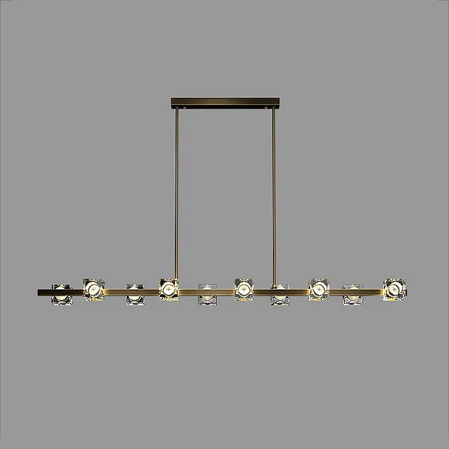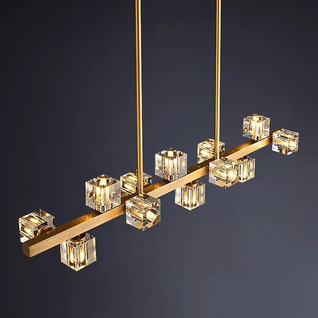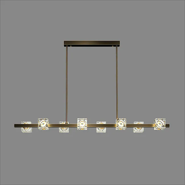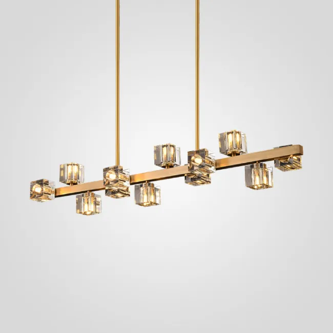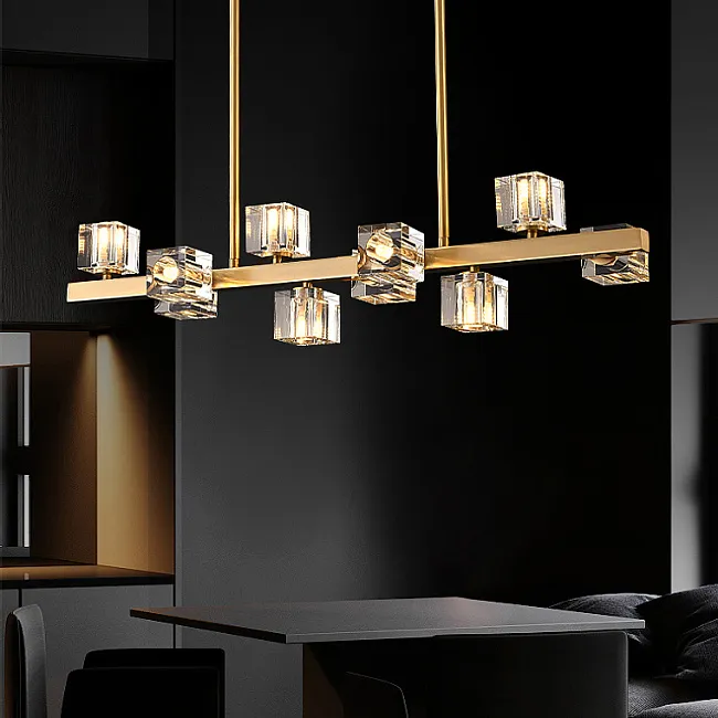 Серия светодиодных люстр на кольцевом каркасе с плафонами кубической формы из натурального хрусталя