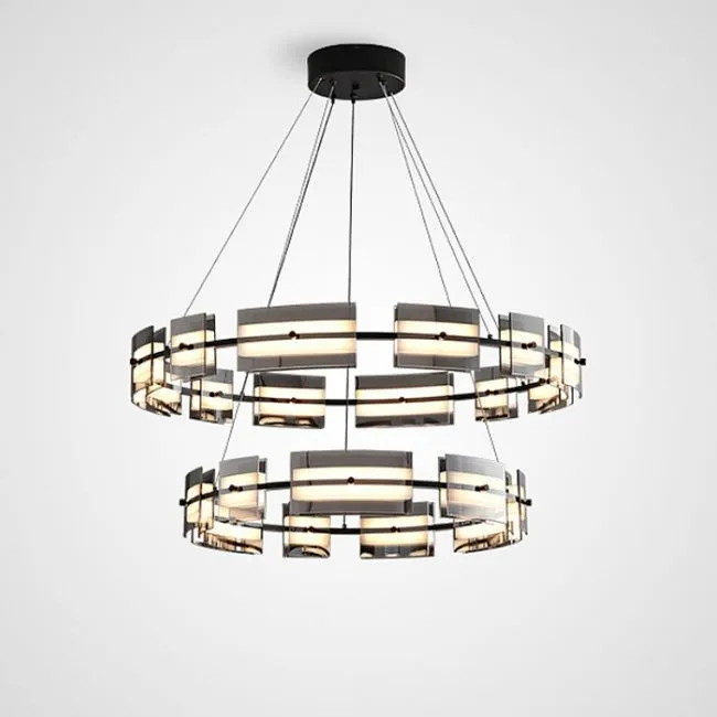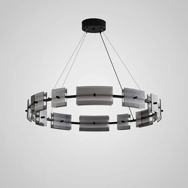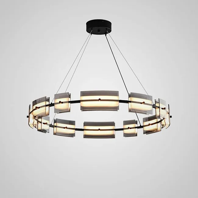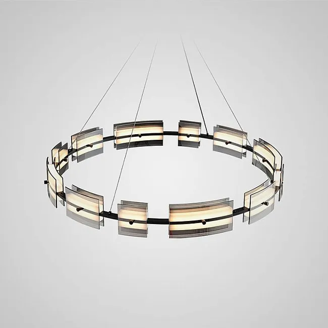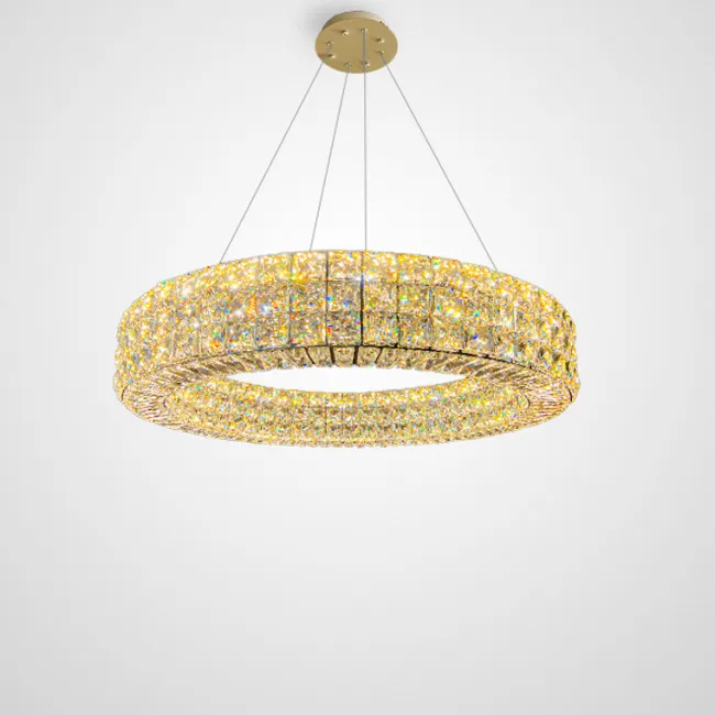 Серия кольцевых светодиодных люстр с хрустальными дисковидными рассеивателями в виде соцветий на конических стойках