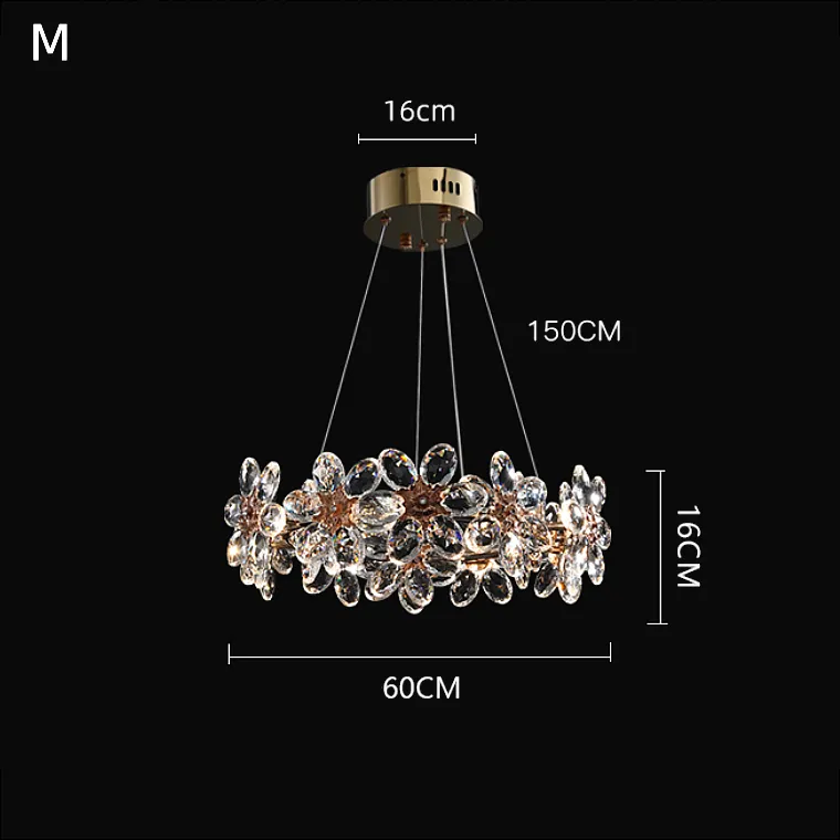 Серия кольцевых люстр с цветочным узором из ограненного хрусталя на металлическом каркасе