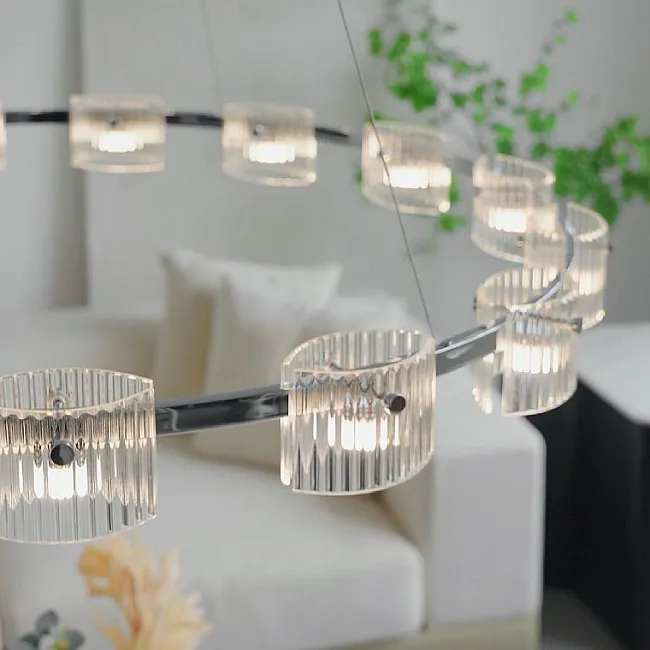 ELIS — дизайнерская кольцевая люстра с выразительными изогнутыми плафонами, подвешенными на тонких струнах подвеса. Эта модель — настоящее украшение современного или классического интерьера, созданная для тех, кто ценит гармонию формы и высокое качество материалов.