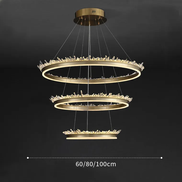 Серия светодиодных кольцевых люстр с натуральными кристаллами хрусталя