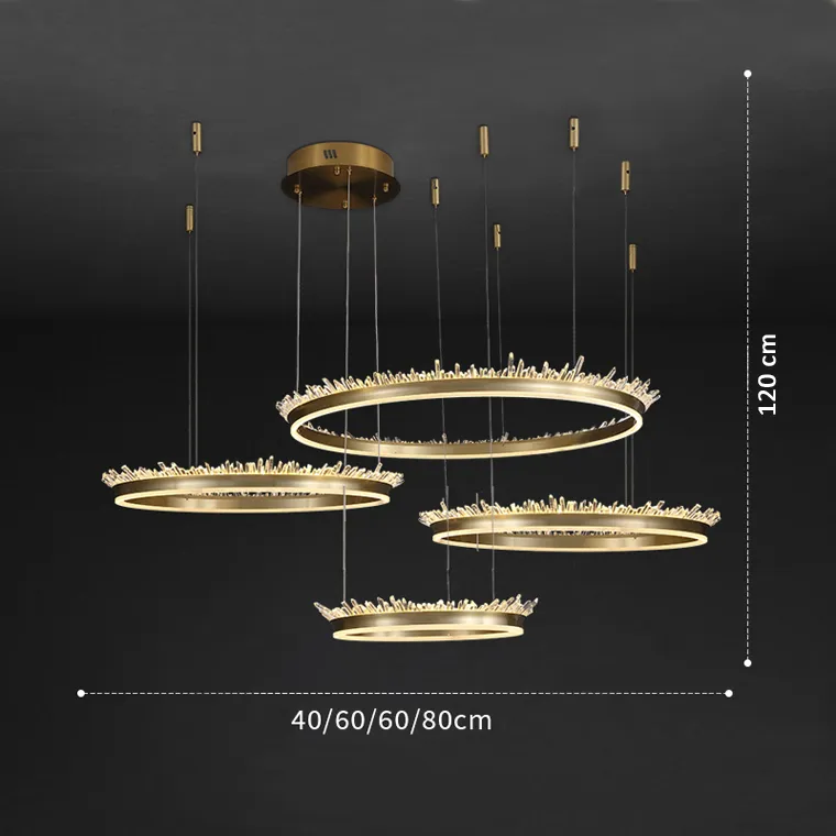 Серия светодиодных кольцевых люстр с натуральными кристаллами хрусталя