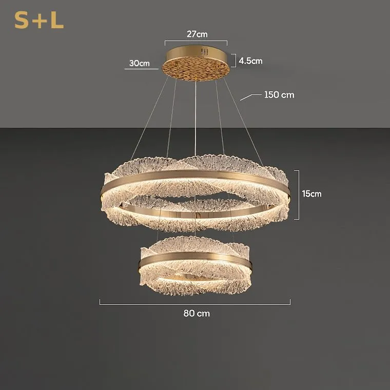 Эти кольцевые люстры станут идеальным решением для спален и гостиных, где превратятся в главный акцент, наполняя пространство мягким светом и создавая уютную атмосферу. Если вы ищете что-то более грандиозное, обратите внимание на вариант с двойным кольцом, который добавит вашей гостиной или большому залу торжественности и величия, превращая обычный вечер в незабываемое событие.