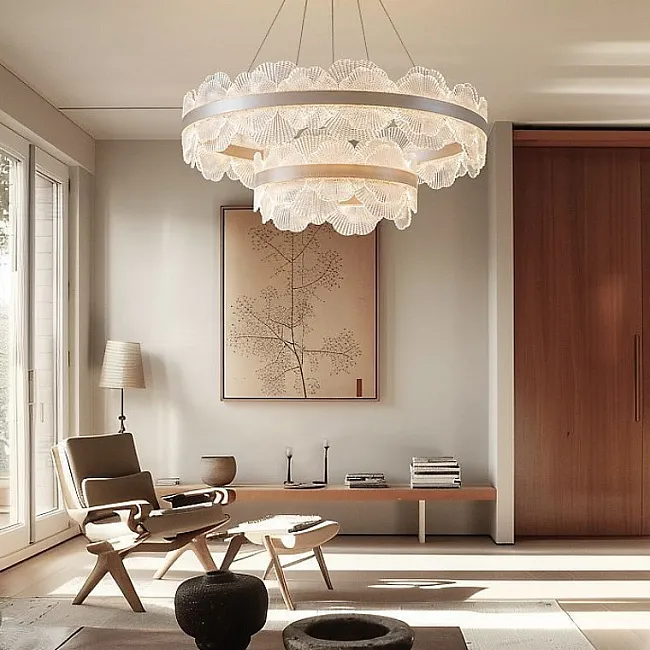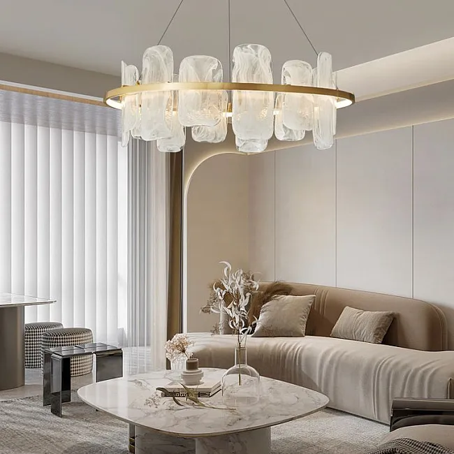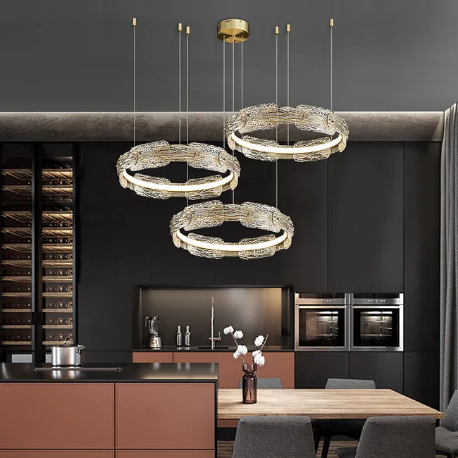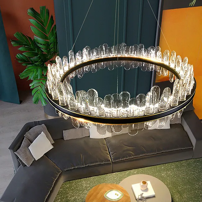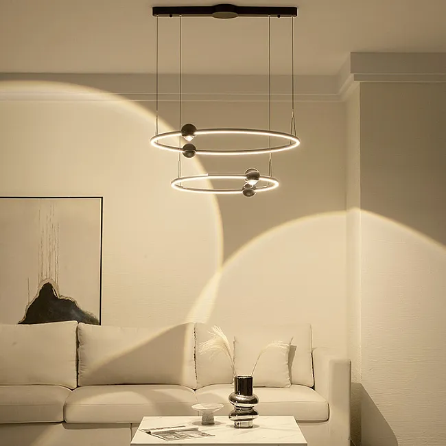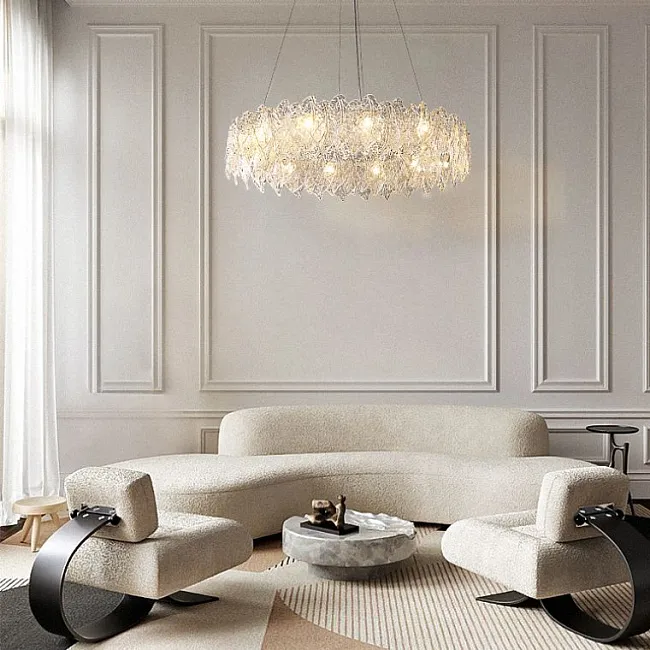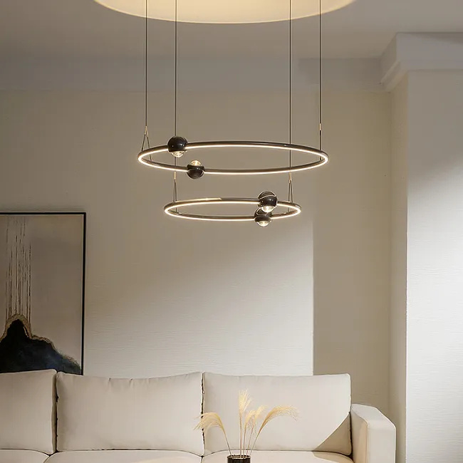 Эти кольцевые люстры станут идеальным решением для спален и гостиных, где превратятся в главный акцент, наполняя пространство мягким светом и создавая уютную атмосферу. Если вы ищете что-то более грандиозное, обратите внимание на вариант с двойным кольцом, который добавит вашей гостиной или большому залу торжественности и величия, превращая обычный вечер в незабываемое событие.