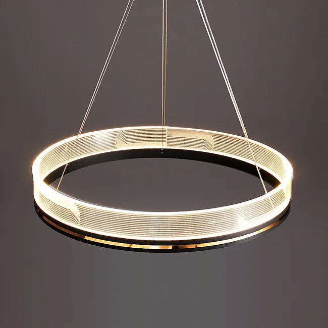 Серия кольцевых люстр с рассеивателями из фактурного оптического акрила.