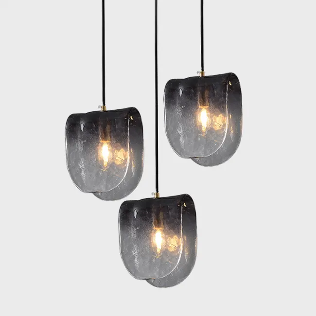 Серия кольцевых светодиодных люстр с изогнутыми рельефными рассеивателями из дымчатого стекла