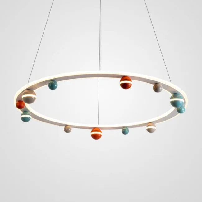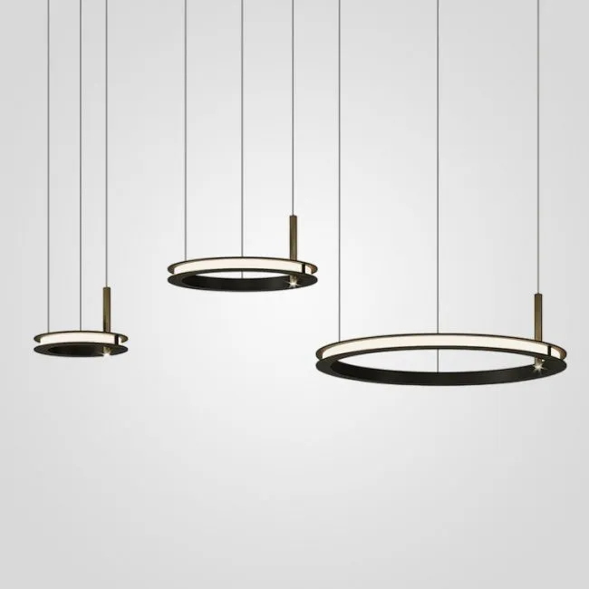 Светодиодная люстра в виде комбинации колец разного диаметра с цилиндрическими спотами