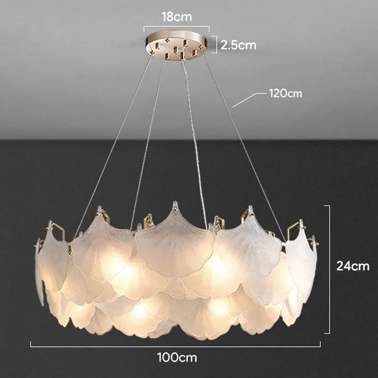 Ginkgo — серия дизайнерских кольцевых люстр с уникальным стеклянным декором в виде листьев. Эта модель вдохновлена природными формами и станет центральным элементом интерьера, привнося в пространство гармонию, мягкость и визуальную глубину.
