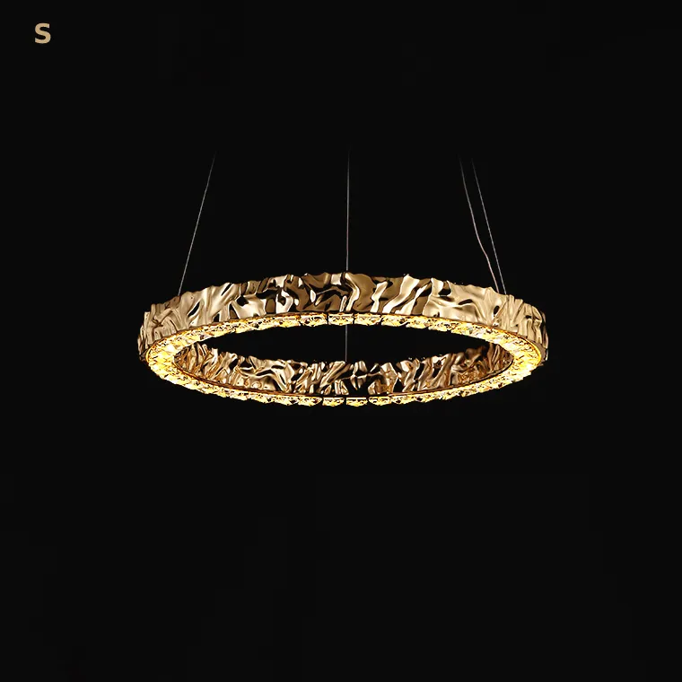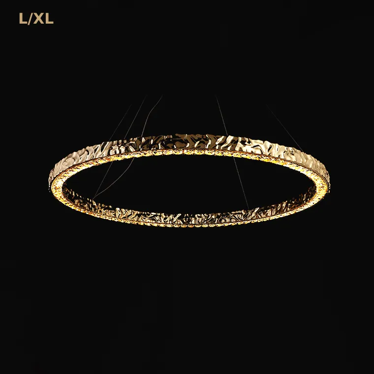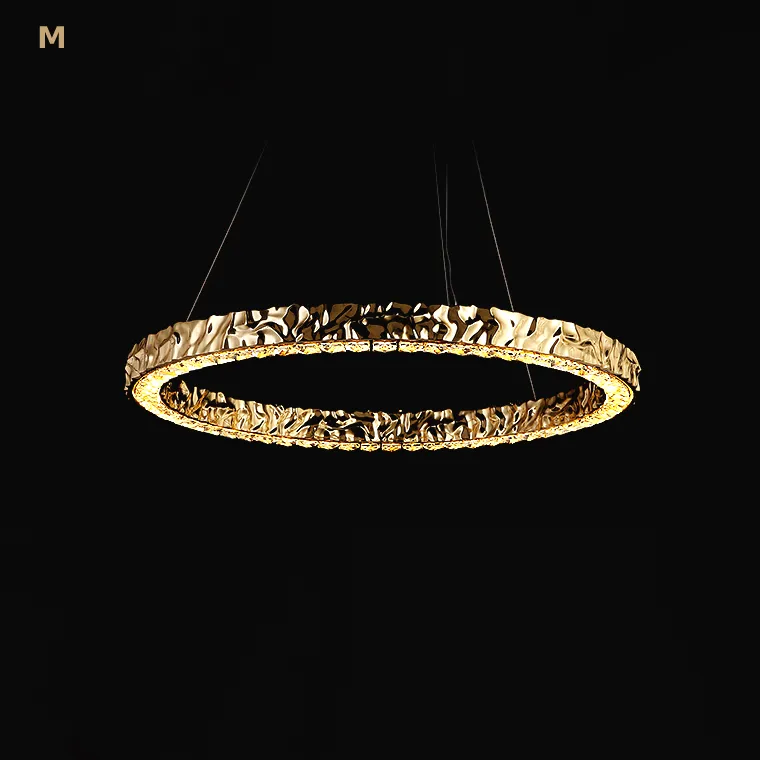 Серия кольцевых светодиодных люстр с рельефным латунным корпусом и рассеивателями из хрусталя К9