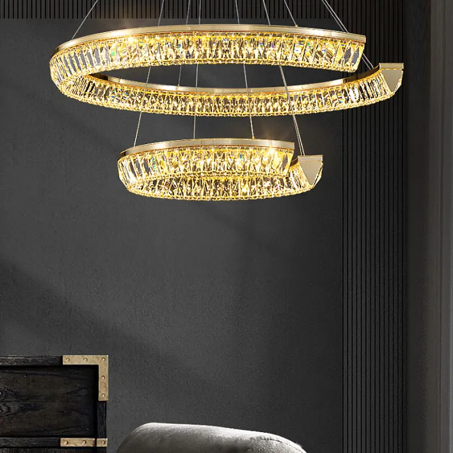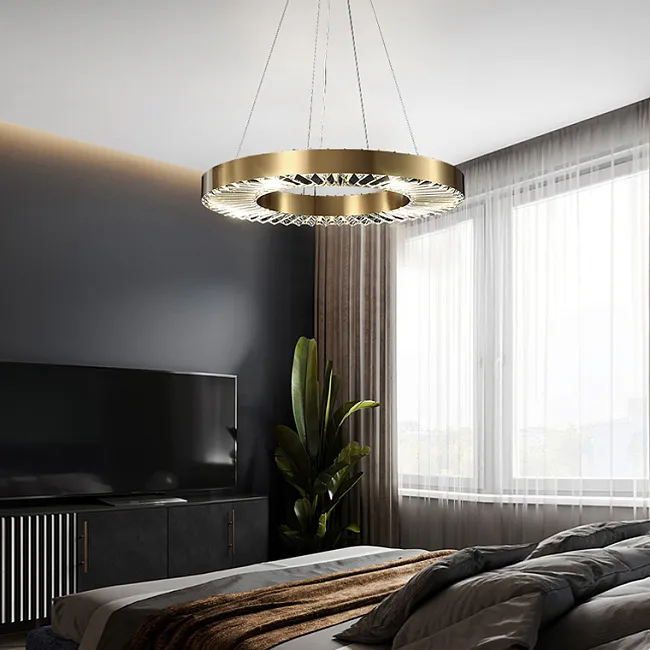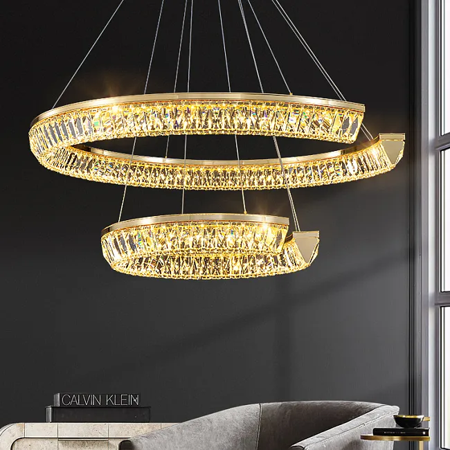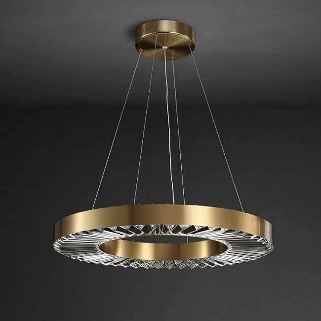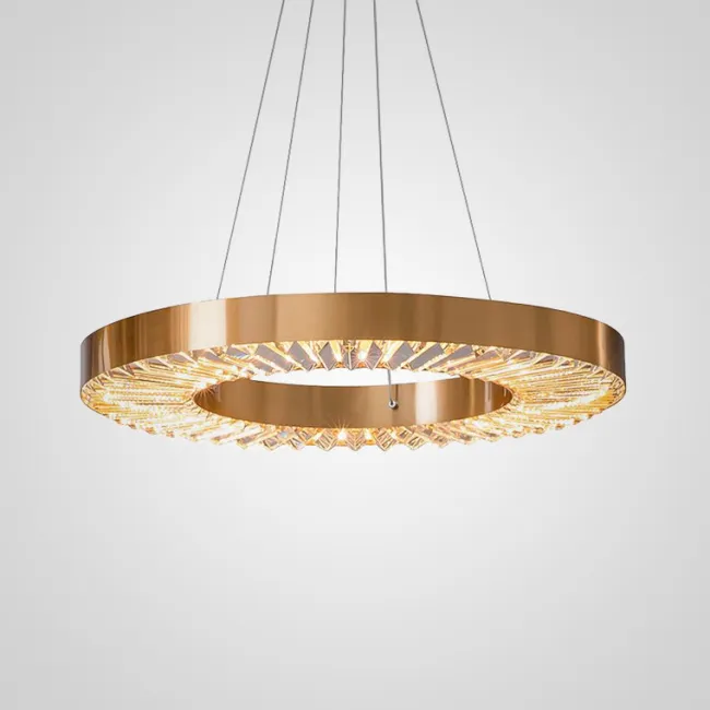 Серия кольцевых светодиодных люстр с рельефным латунным корпусом и рассеивателями из хрусталя К9