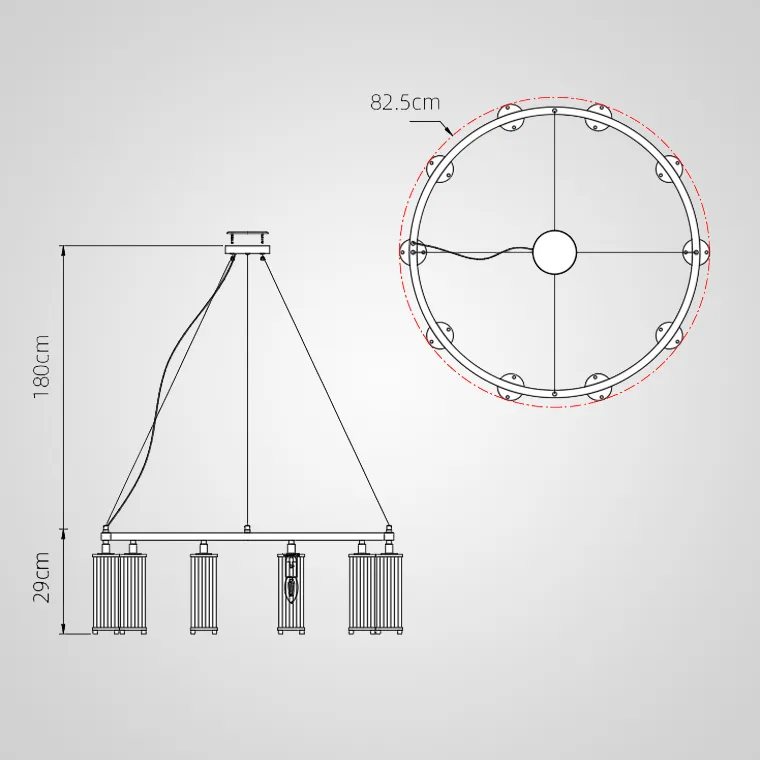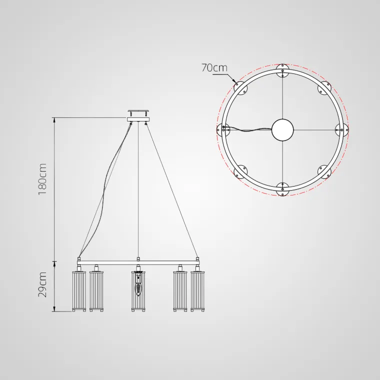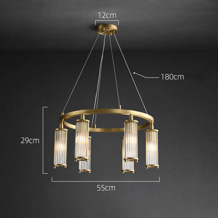 Кольцевая люстра с цилиндрическими плафонами из стеклянных стержней в бронзовой оправе