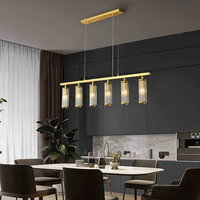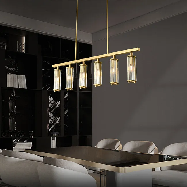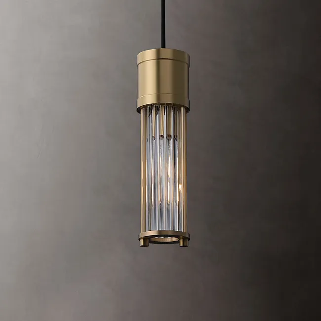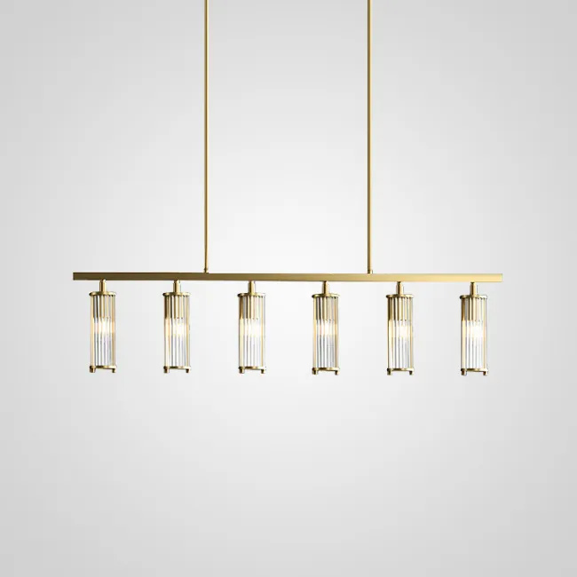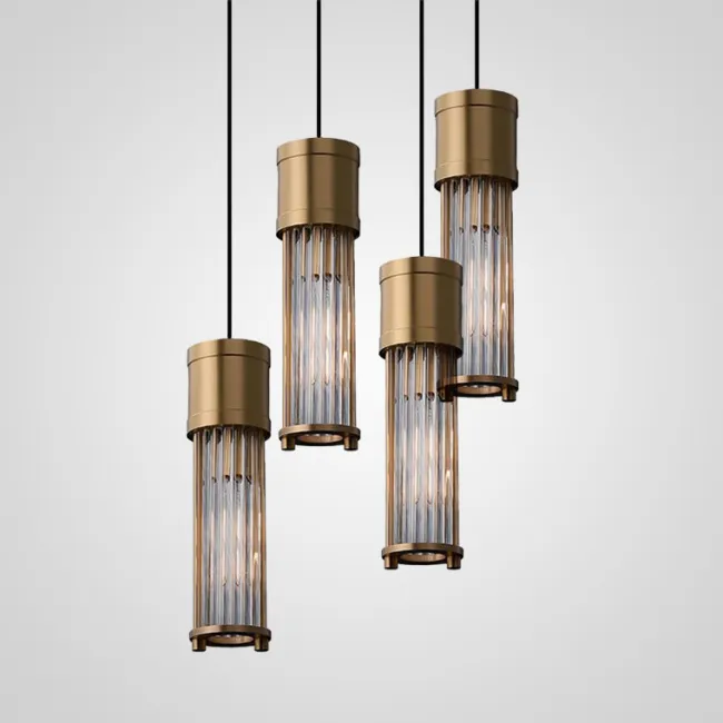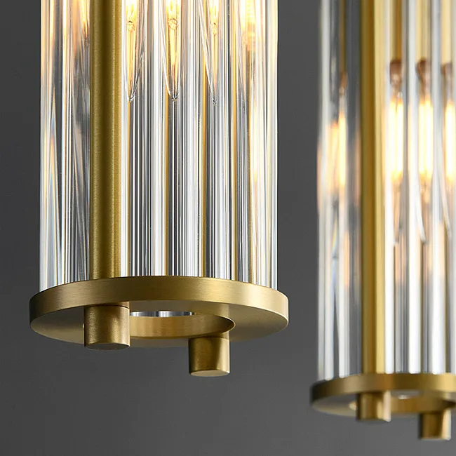 Кольцевая люстра с цилиндрическими плафонами из стеклянных стержней в бронзовой оправе