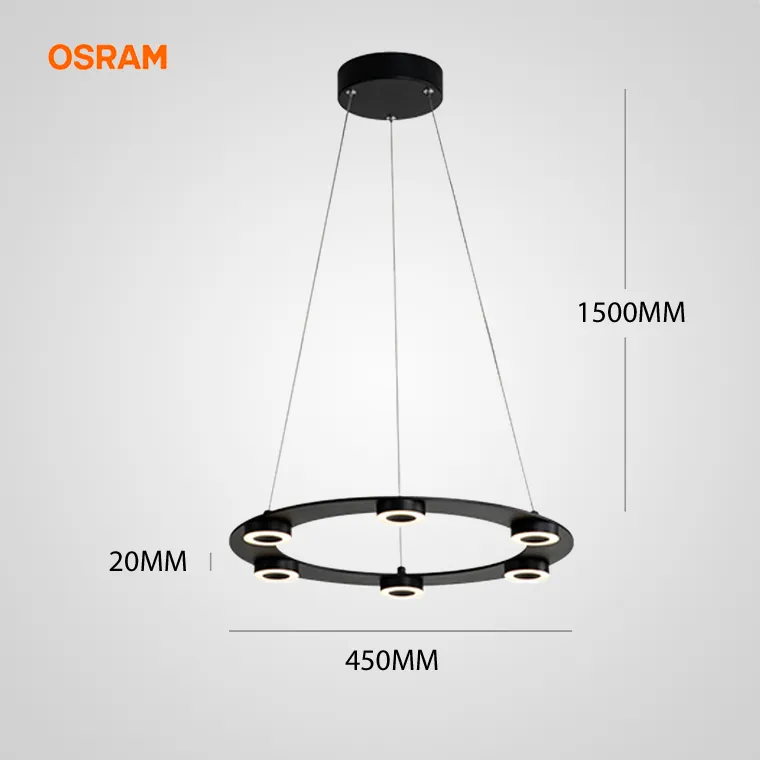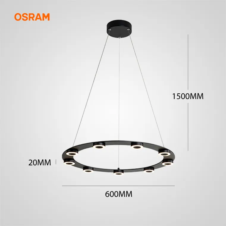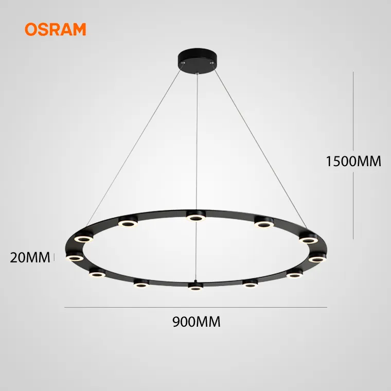 Серия кольцевых светодиодных люстр с направленными книзу кольцевидными плафонами Светильник оснащен лампами OSRAM, обеспечивающих высокую цветопередачу в 95 CRI