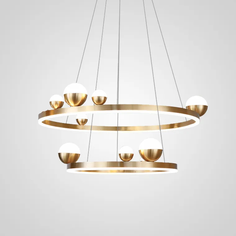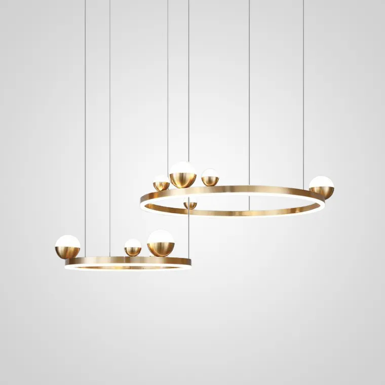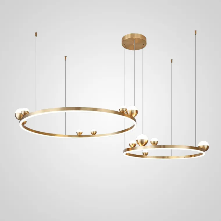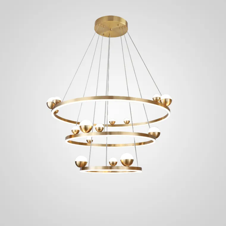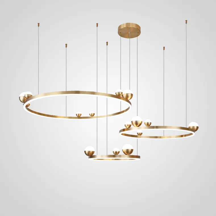 Серия светодиодных люстр в виде комбинации колец с шарообразными матовыми плафонами разного диаметра