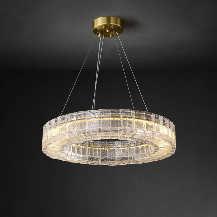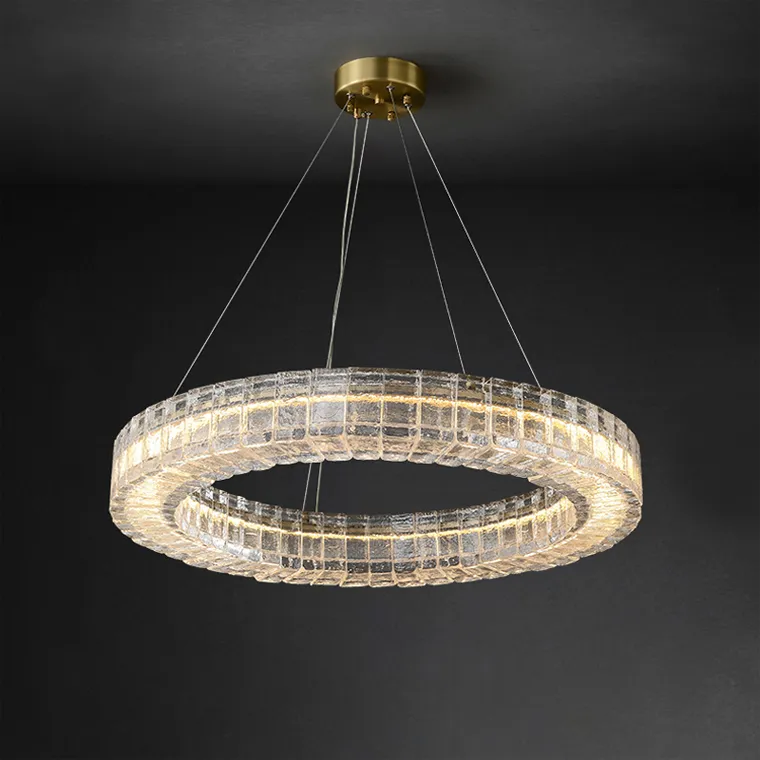 Серия кольцевых светодиодных люстр с прямоугольными рассеивателями из стекла с эффектом льда