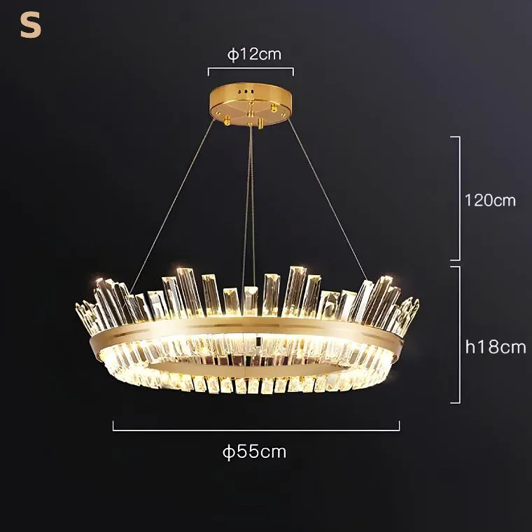 Каркас из золотого металла формирует основу для красивых хрустальных пластин, расположенных по всему контуру кольца. Эти пластины напоминают корону и придают люстре роскошный вид. Сочетание света, отражаемого хрусталем, и золотого каркаса создает элегантное и изысканное освещение в вашей комнате.