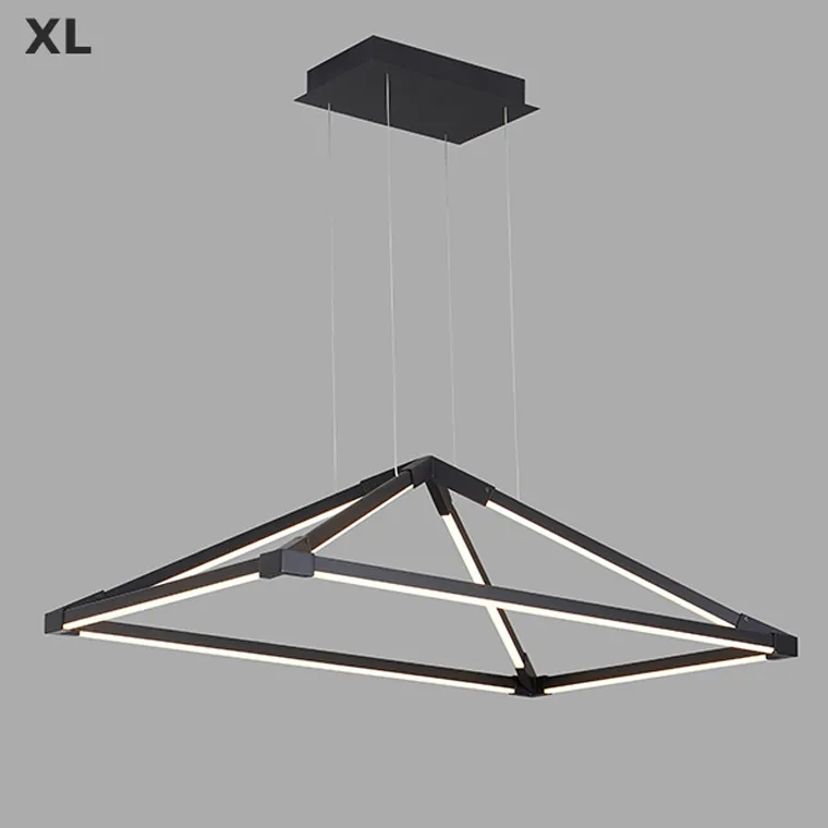 Подвесная люстра в минималистичном стиле с плафонами в виде комбинации черных стержней со светодиодной подсветкой, образующих пирамиду
