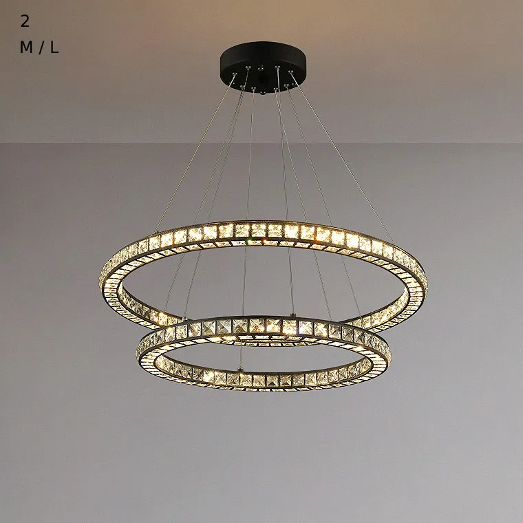 Серия светодиодных люстр в виде комбинации колец разного диаметра с прямоугольными рассеивателями из хрусталя