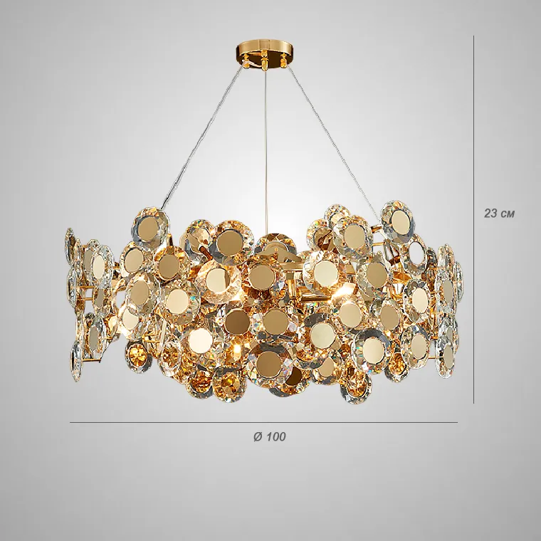 Серия дизайнерских люстр с рассеивателями в виде хрустальных медальонов с золотой сердцевиной на ветвистом каркасе