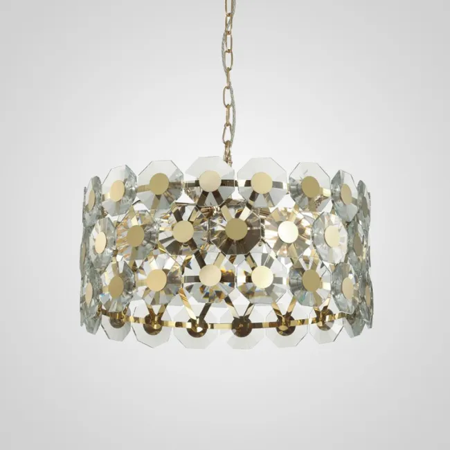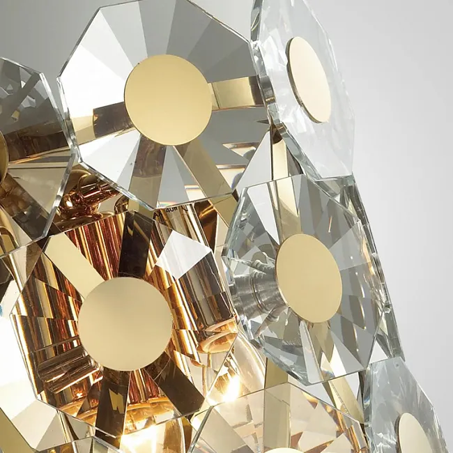 Серия дизайнерских люстр с рассеивателями в виде хрустальных медальонов с золотой сердцевиной на ветвистом каркасе