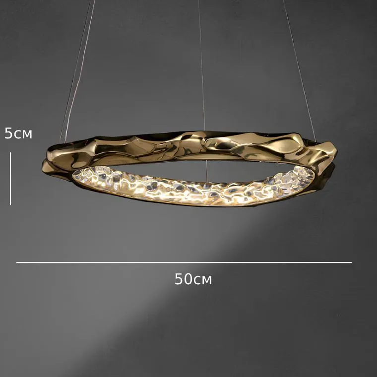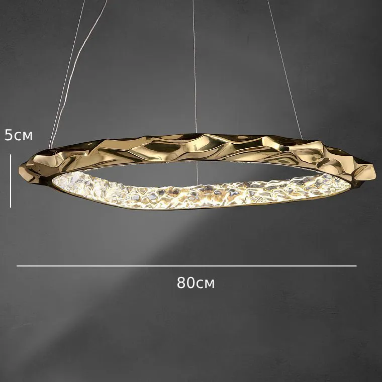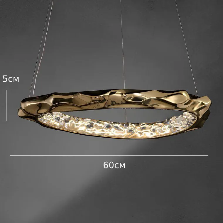 Ох, мы с дизайнером полгода искали люстру для гостиной! Всё было не то, не цепляет’.. Пока я не увидела ЭТО. Даже не знаю, как описать — хотя мы впечатлились и фото, но фотографии в сети не передают реальную красоту! Золотое кольцо неправильной формы, внутри — будто застывшие капли света... Это потрясающе. Каждый шов, каждый изгиб — ювелирная работа.