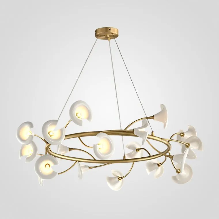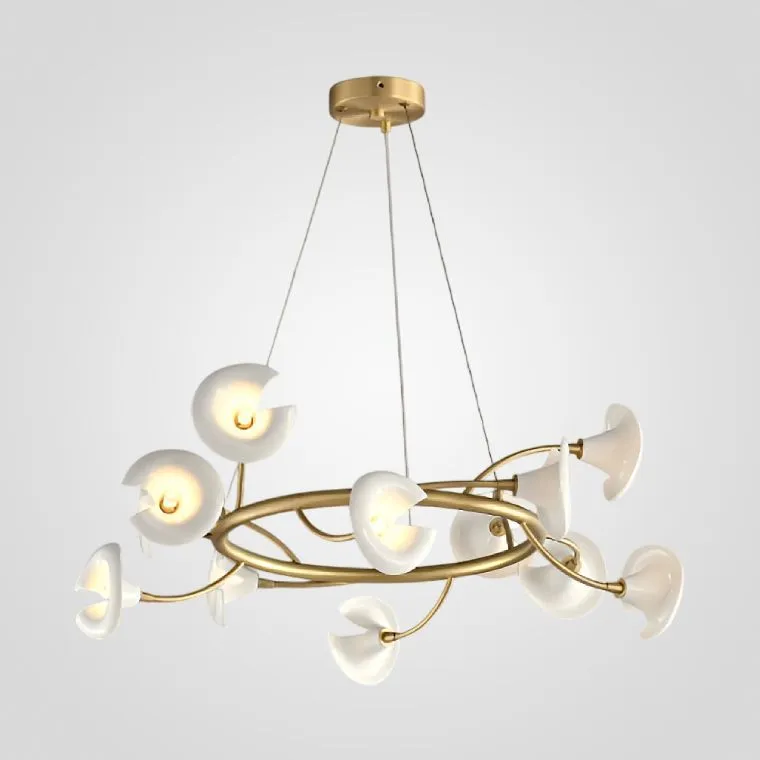 Серия люстр с плафонами в виде раскрывшихся бутонов на кольцевом каркасе
