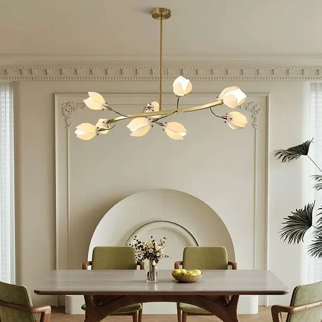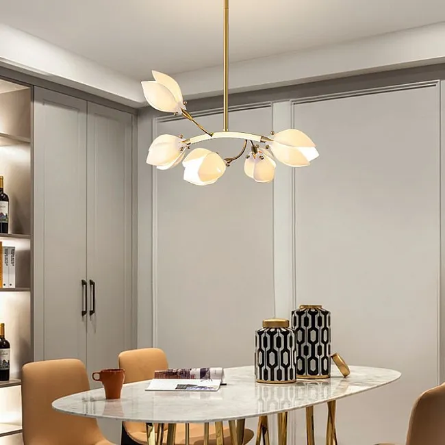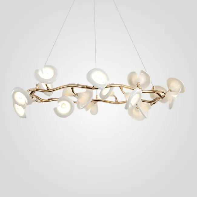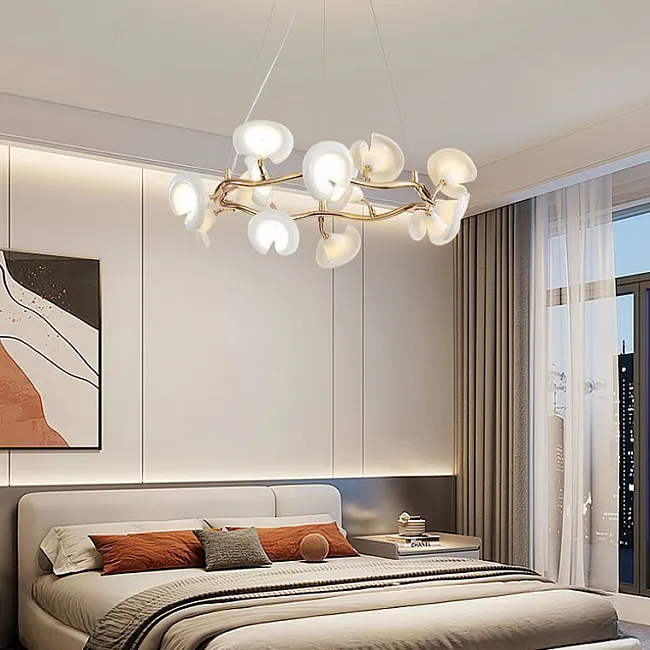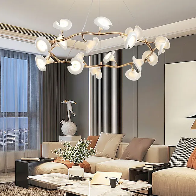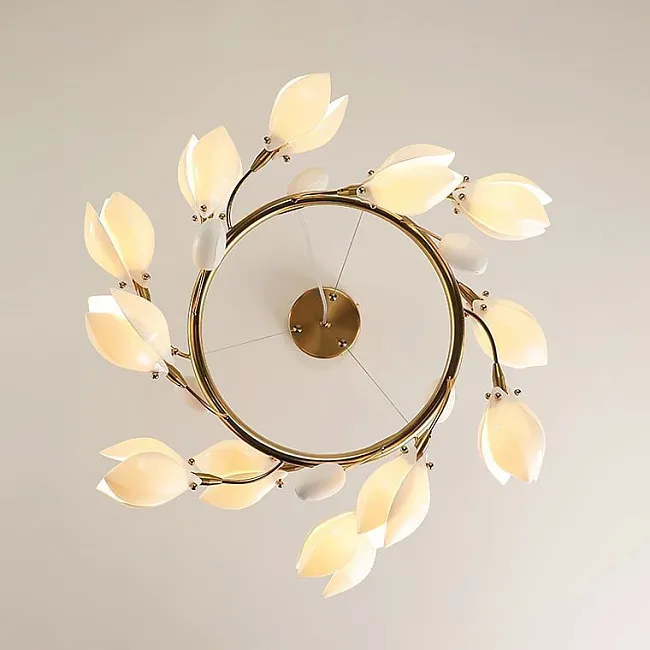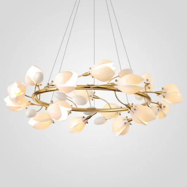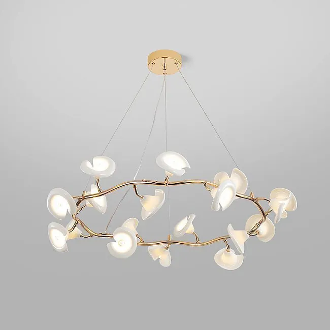 Серия люстр с плафонами в виде раскрывшихся бутонов на кольцевом каркасе