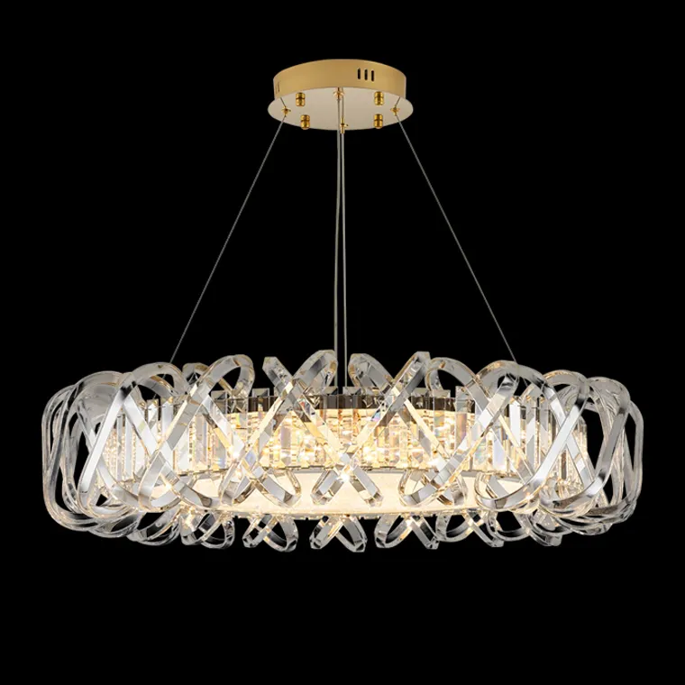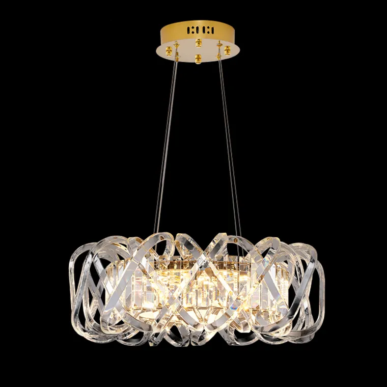 Серия дизайнерских светодиодных люстр с абажуром из перекрестных хрустальных элементов на блестящем круглом каркасе