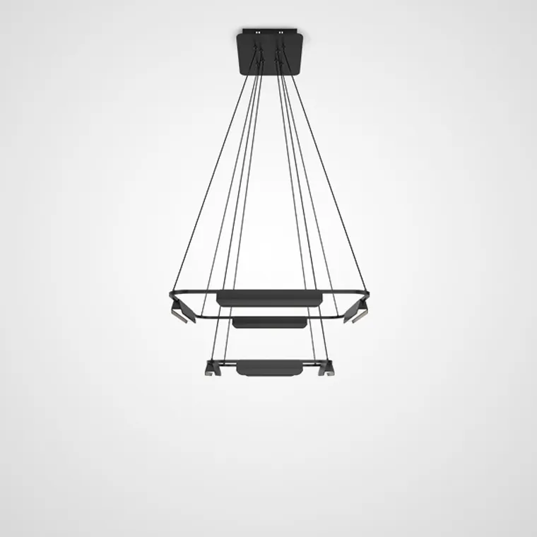 Серия светодиодных люстр с черными прямоугольными рассеивателями на прямоугольном каркасе