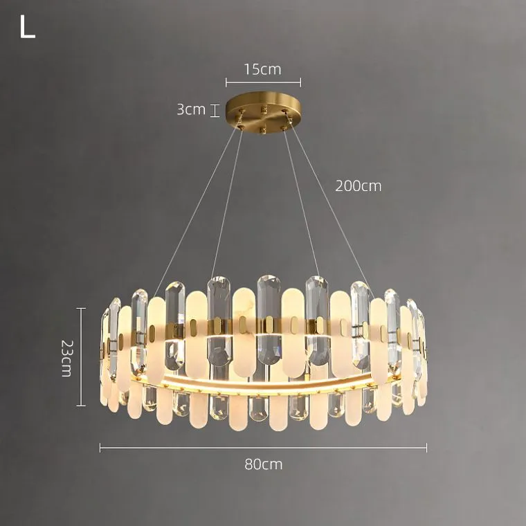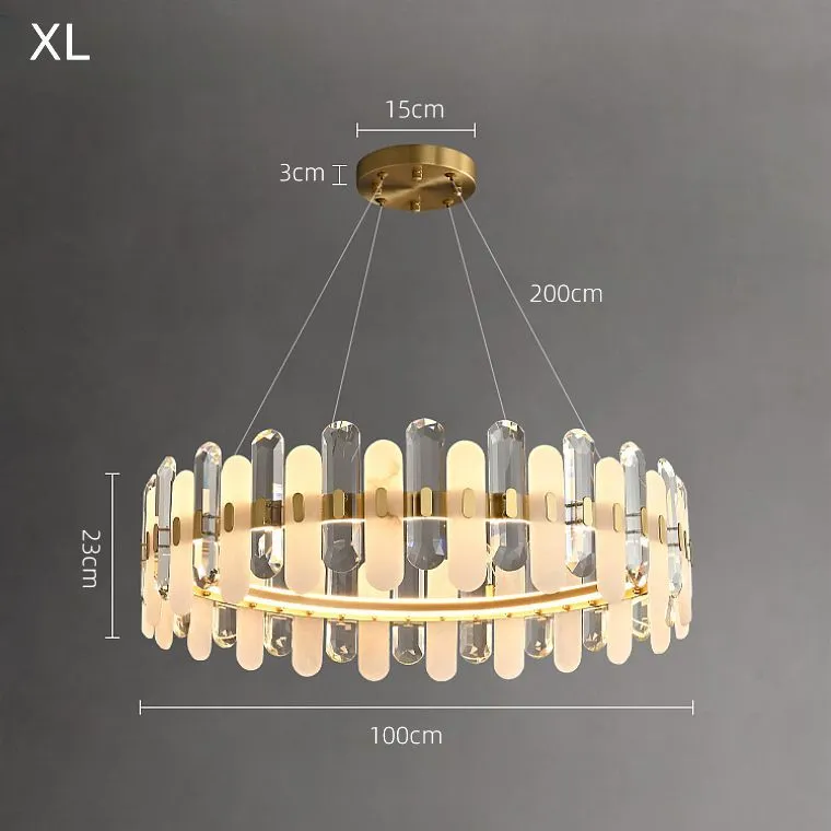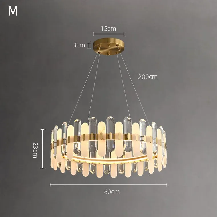 Кольцевой светильник с чередующимися мраморными и хрустальными пластинами с закругленными краями на латунном каркасе