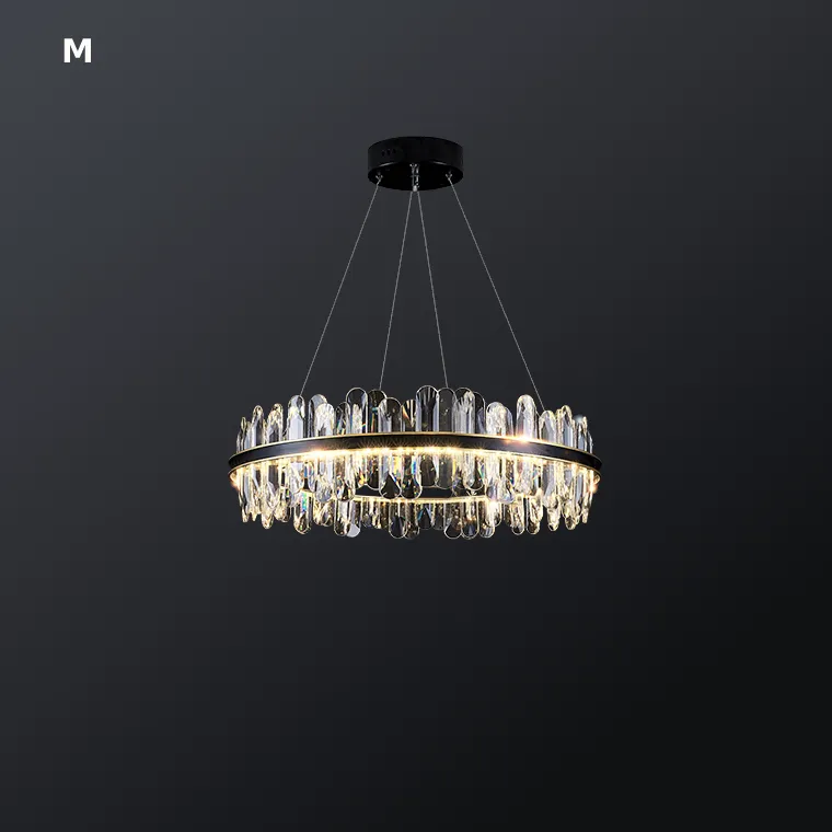 Серия кольцевых светодиодных люстр с вытянутыми округлыми рассеивателями из хрусталя К9