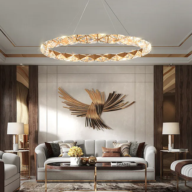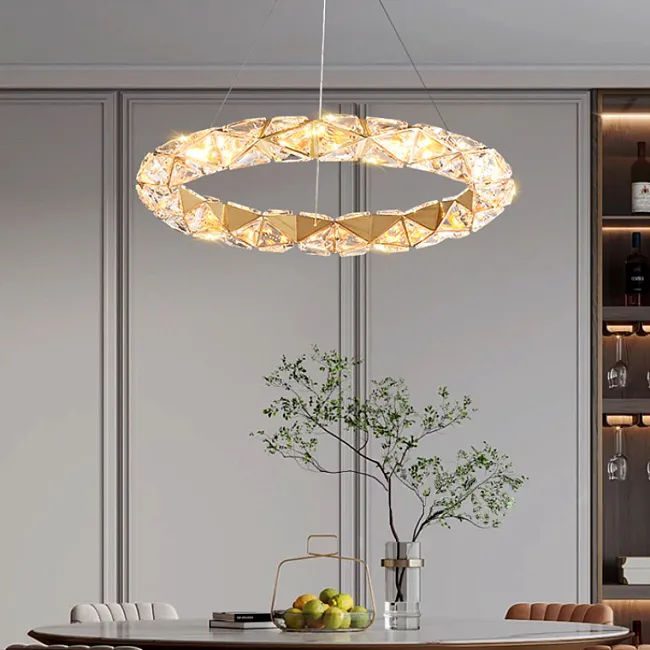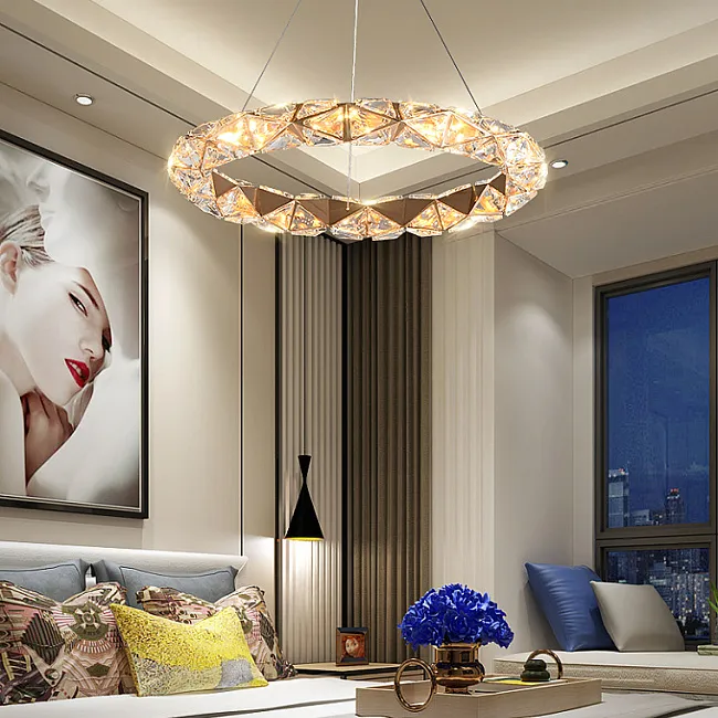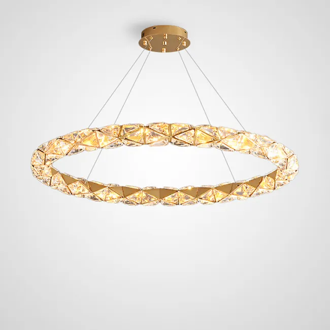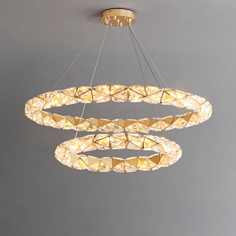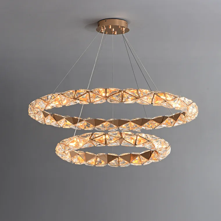 Серия светодиодных люстр в виде комбинации двух колец с треугольными рассеивателями из хрусталя