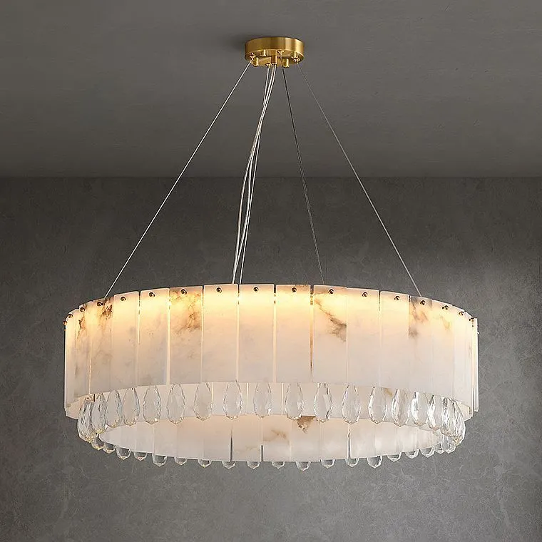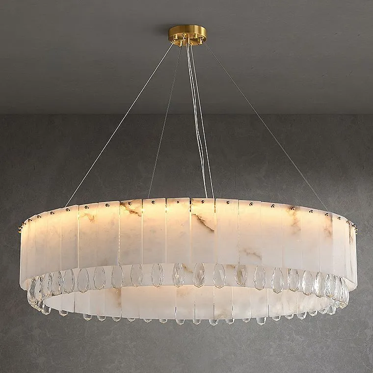 Серия кольцевых светодиодных люстр из мраморных пластин с декоративными хрустальными подвесками