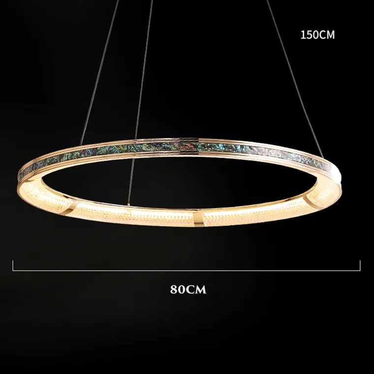 Серия дизайнерских люстр с внутренней LED-подсветкой по контуру кольцевого корпуса с перламутровым декором