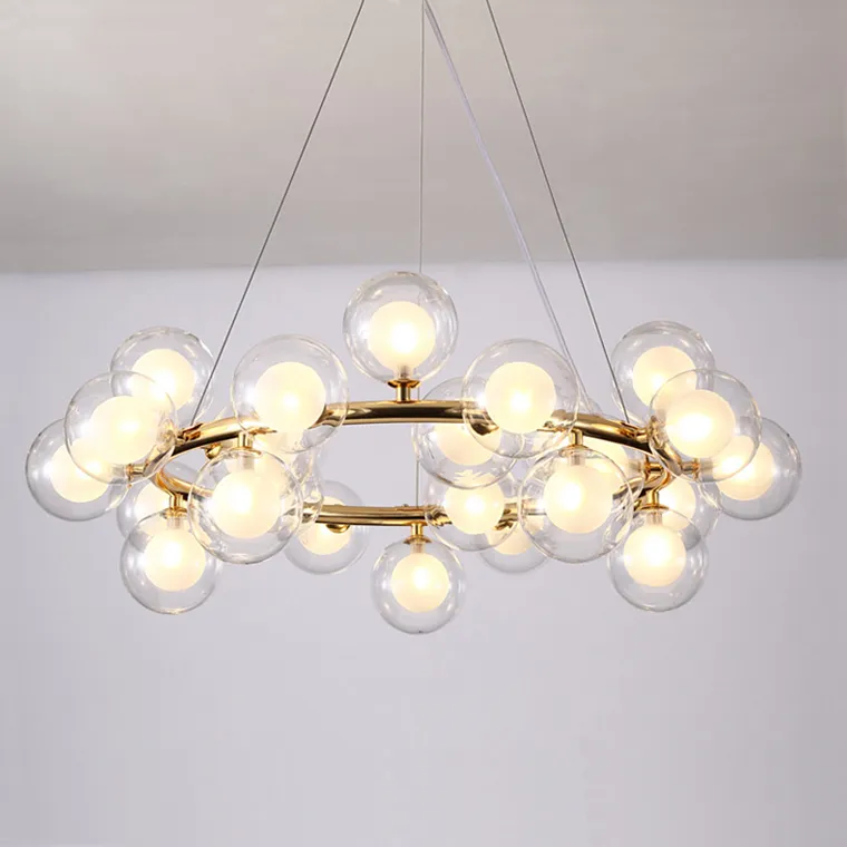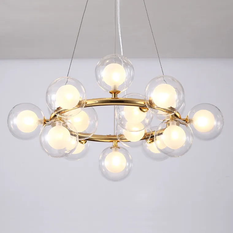 Люстра LINDA на струнном подвесе с гроздьями двойных стеклянных плафонов