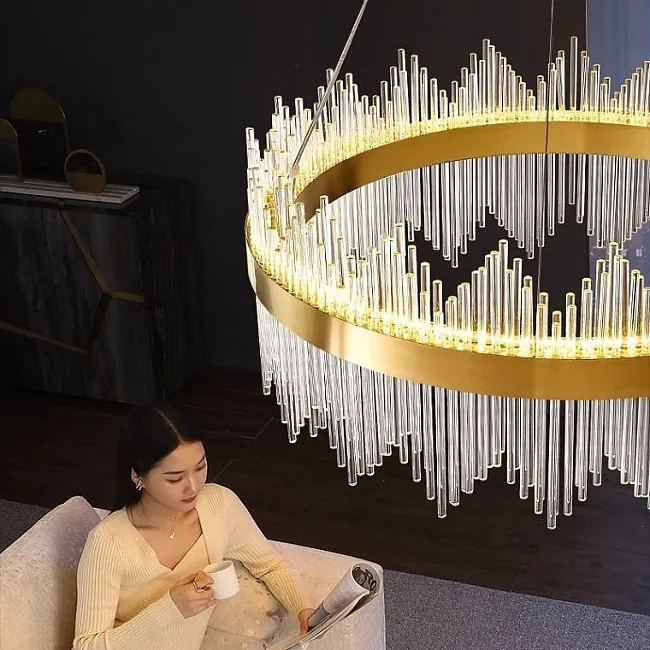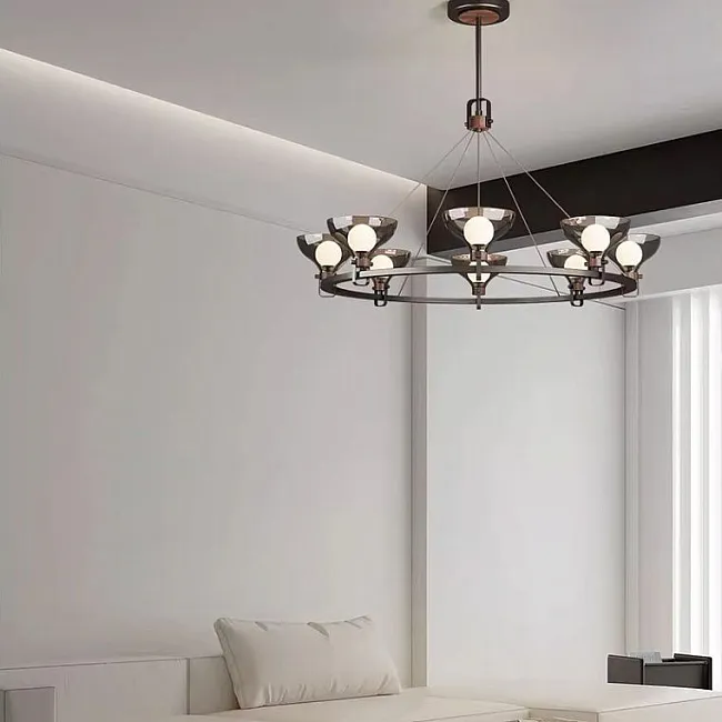 Подвешенные на тонких струнах, эти люстры создают эффект визуальной легкости, будто паря в воздухе. Такой современный элемент дизайна добавит вашему интерьеру нотки изящества, не перегружая пространство. Благодаря своей стильной и основательной конструкции, эти люстры идеально впишутся в классический интерьер, привнеся в него новую волну современной элегантности.