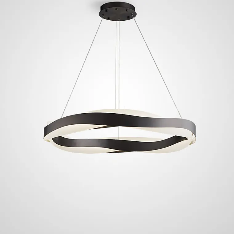 Серия дизайнерских светодиодных люстр с матовыми волнообразными плафонами на черном кольцевом корпусе