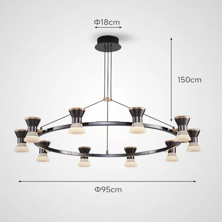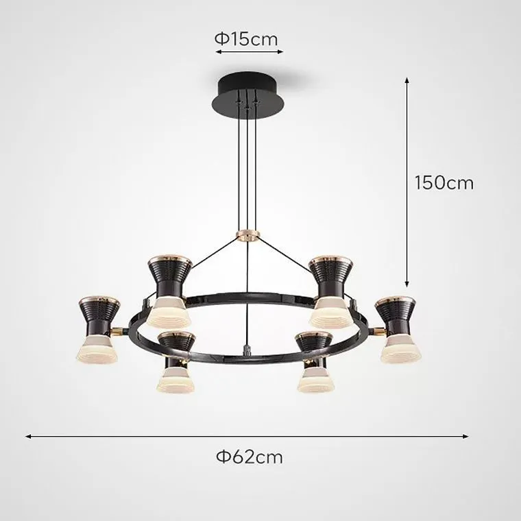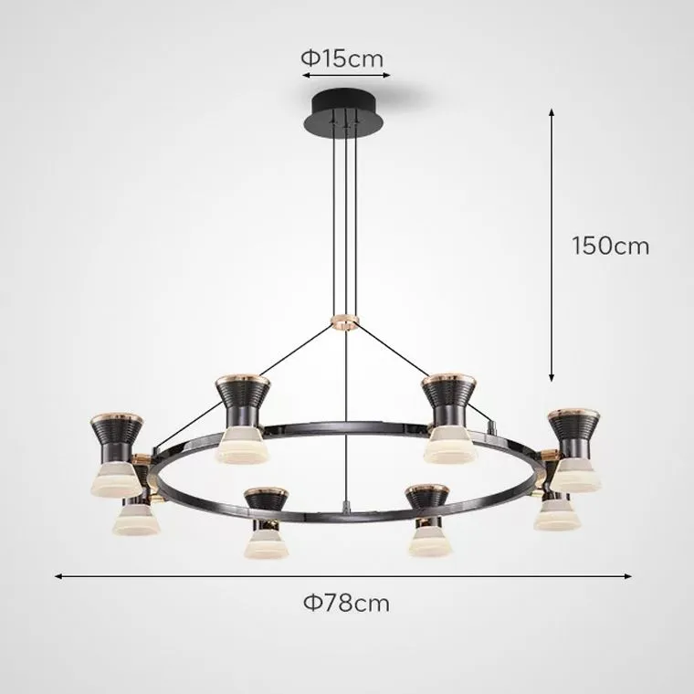 Плафоны люстры выполнены в виде песочных часов. Их конструкция позволяет повернуть каждый плафон на 360 градусов! С одно стороны — изысканный жемчужно-черный цвет с золотой вставкой, с другой — нежный белый рассеиватель. Эти плафоны не просто украшают комнату, они задают ей настроение, направляя свет потоками вверх и вниз.