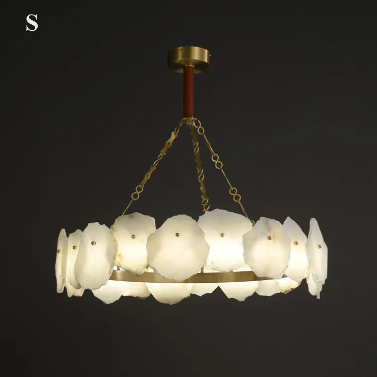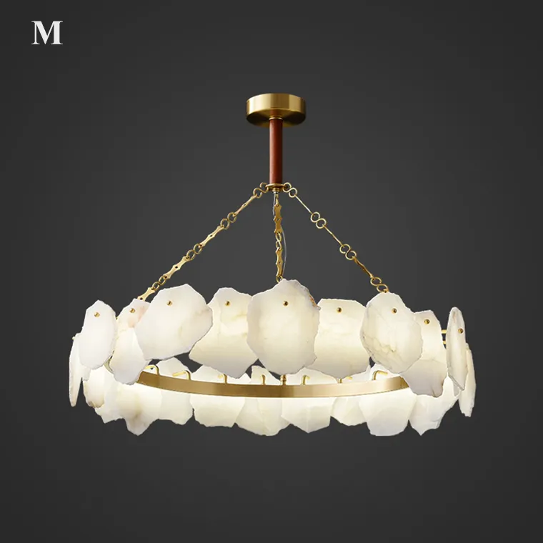Кольцевая премиальная люстра с декором из мраморных пластин неправильной формы