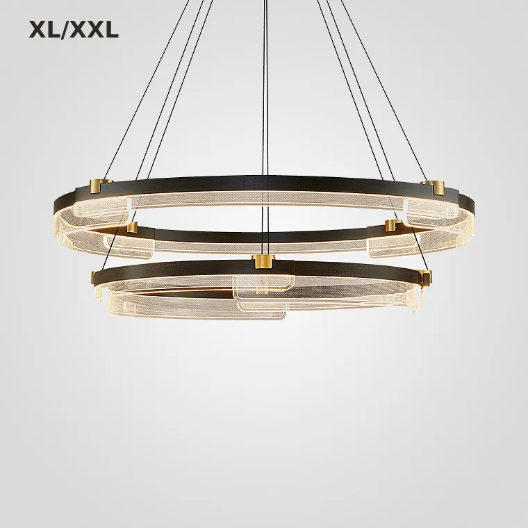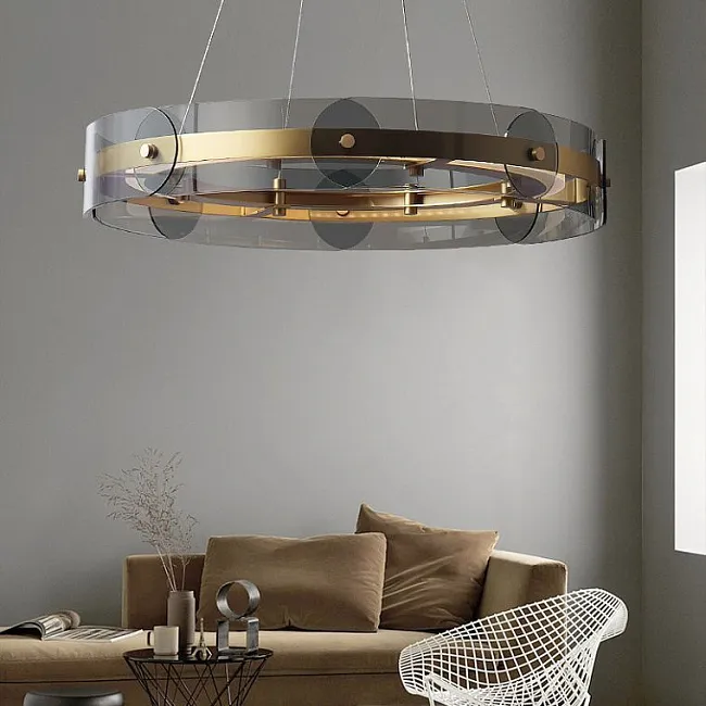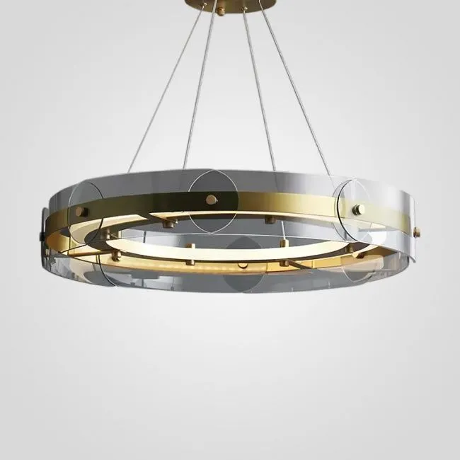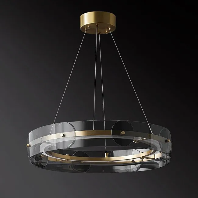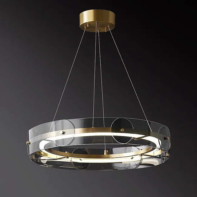 Серия кольцевых светодиодных люстр в виде сцепленных круговых сегментов с прозрачными рассеивателями с гравировкой