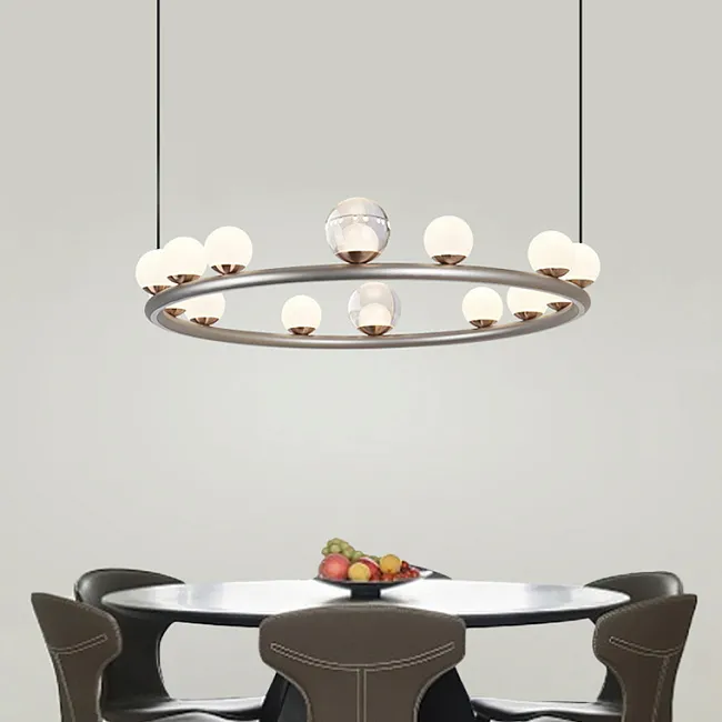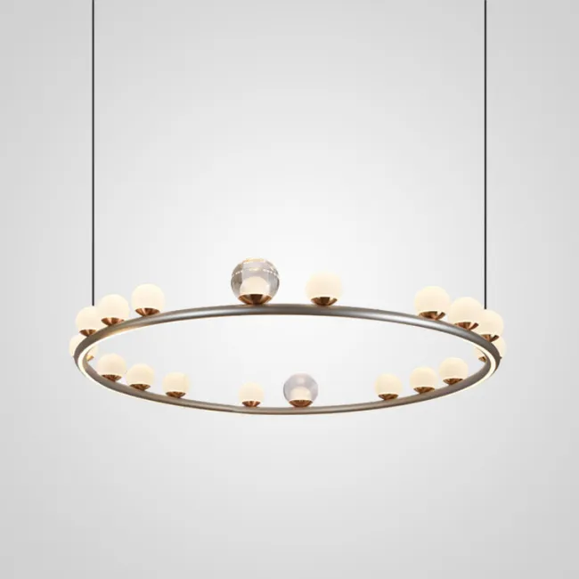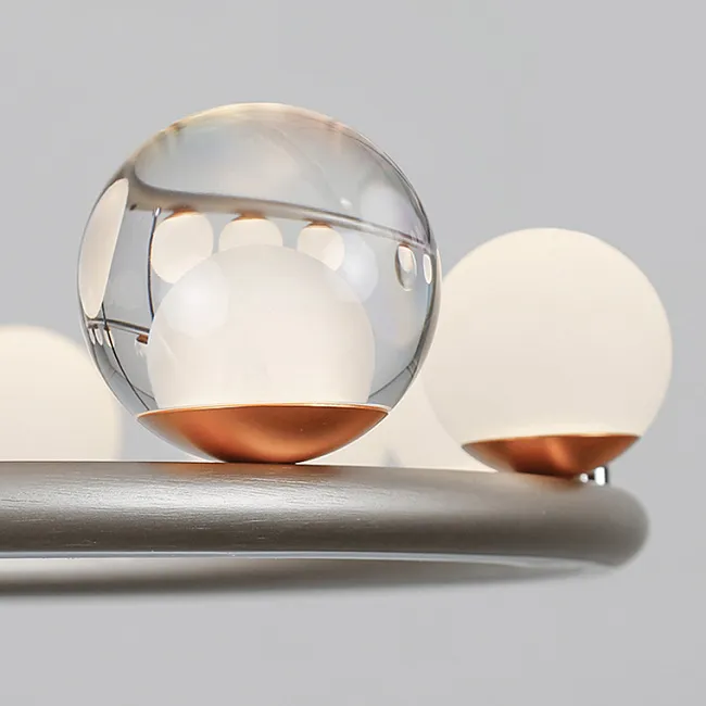 Люстра MARTIALIS, как драгоценное украшение, способна трансформировать пространство вашей спальни, гостиной или холла в элегантное и стильное место. Хромированный кольцевой корпус, с двойными шарообразными плафонами из прозрачного и белого стекла, создает неповторимую игру света и теней.