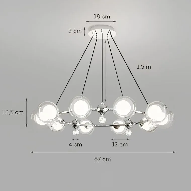 Каждый плафон – как жемчужина, заключенная в прозрачную оправу, искрится чистотой и элегантностью. Люстра словно вдохновлена природой, с легким намеком на флористичность в своем дизайне, но сохраняет современный и стильный вид, который идеально впишется в любые интерьерные решения. Она станет центром внимания, источником вдохновения и уюта, который так важен в каждом доме. Позвольте этой люстре наполнить ваш дом светом, красотой и уникальной атмосферой, которая каждый день будет радовать вас и ваших близких.